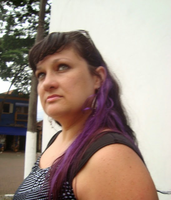 Eu queria jogar um azul turquesa...ou até um verde...mas, eu não tinha e não podia ficar com os cabelos assim, uma vez que no dia seguinte precisaria trabalhar.